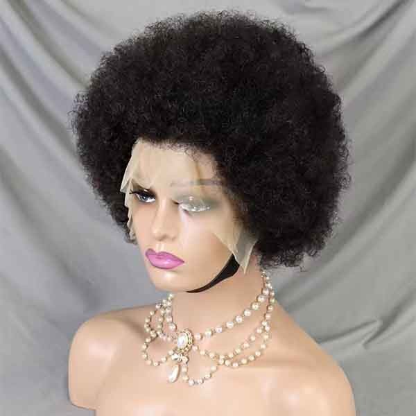 13x4 Πλήρη δαντέλα Προσωπική περούκα Αφρο-κουρλοκέφαλη φυσικά ανθρώπινα μαλλιά Κοντή περούκα