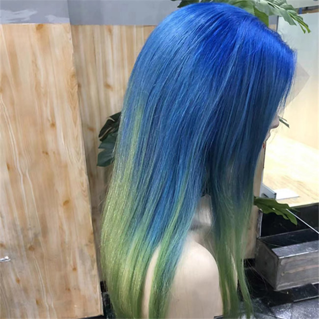 Σοχιά Μπλε Πράσινο Χρώμα Στενή Δαντέλα Μετωπική Παρούκα Ανθρώπινων Μαλλιών