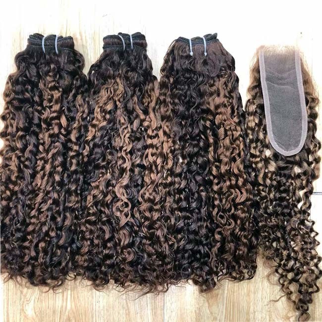 12A Super Double Drawn Highlight Pissy Curl Raw Human Hair Bundle Vendors με 2x6 Κίμ Κ. Κλείσιμο