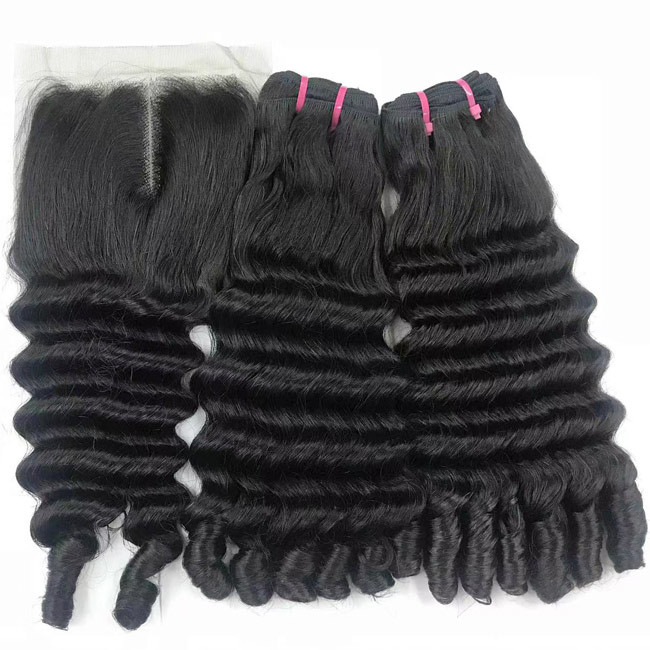 Υπερ διπλό τραβήχτηκε Funmi Bouncy Curly Hair Funmi τρίχες υφάσματα, 100% Raw Cuticle ευθυγραμμισμένα μαλλιά πωλητής Cheveux Bundle