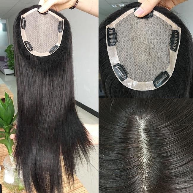 Υψηλής ποιότητας φυσικό μαύρο χρώμα γυναίκες Topper αντικατάσταση μόνιμο Τούπι ανθρώπινη προσθετική τρίχα